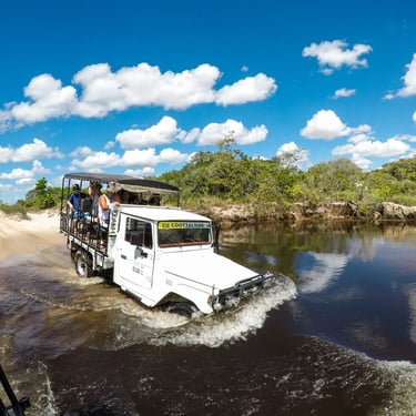 Circuito Lagoa Azul - O percurso até os lençóis é feito em um veículo 4x4 com adaptação do tipo jardineira.